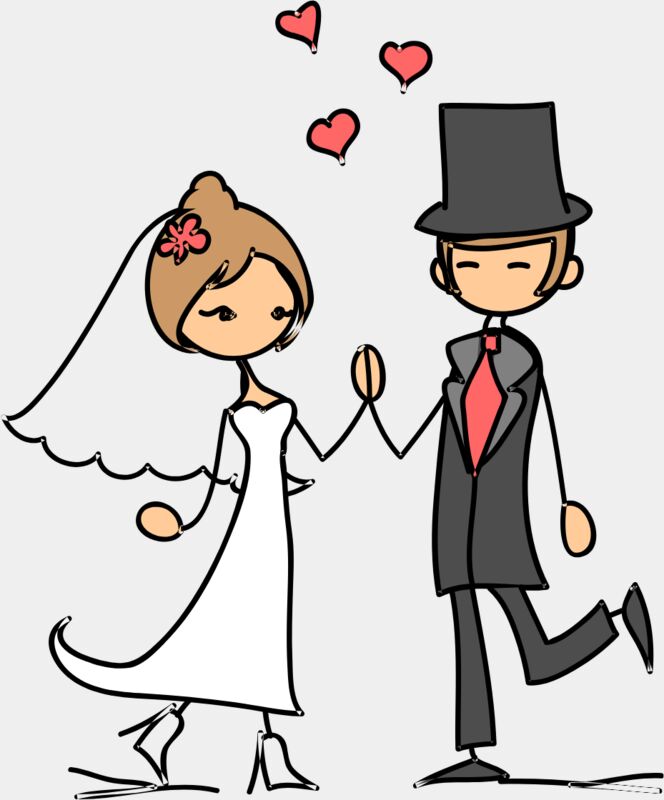 Cartoon Wedding Groom Bride Holding Hands 14
