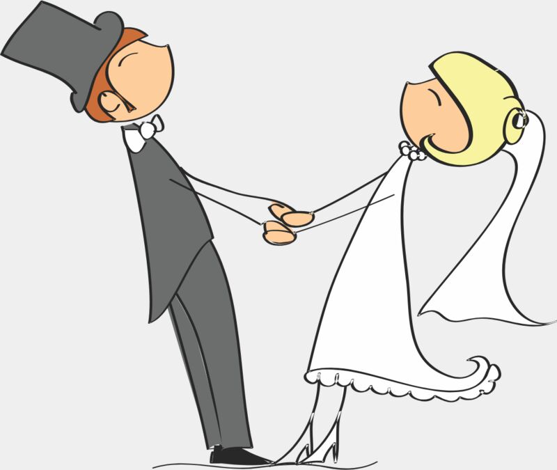 Cartoon Wedding Groom Bride Holding Hands 1